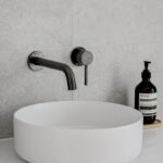 Powdercoated brass door hardware Powdercoated brass bathroom fixtures Stainless Steel under-mount double-bowl sink Ceramic top-mounted bathroom basin Wall-faced porcelain toilet pan